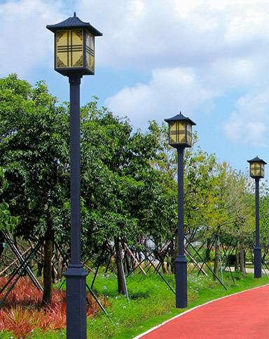 太阳能且末庭院灯以太阳辐射能为能源,白天利用太阳能电池板给蓄电池充电,晚上蓄电池给庭院灯光源供电使用,无需复杂昂贵的管线铺设,可任意调整灯具的布局,安全节能无污染,充电及开/关过程采用智能控制,光控自动开关,无需人工操作,工作稳定可靠,节省电费,免维护。
